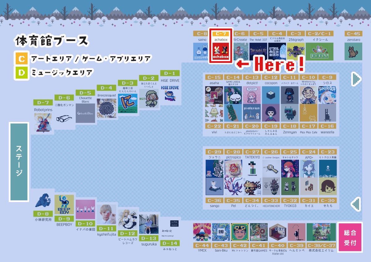 【achabox/お品書きや写真まとめ】 体育館 C-7にてお待ちしております〜!! #pixelartpark