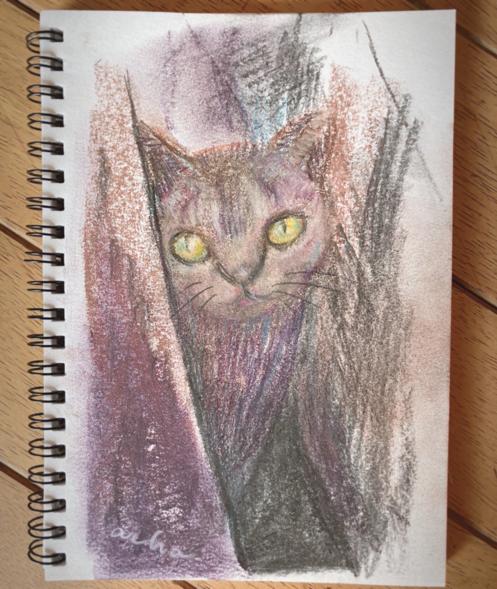 み・つ・め・る じっと じっと happinessはとうとう明日まで。 今日は残念ながら☔️😭 私は14時頃から在廊してます ※ギャラリー前駐車場有 #猫好き #アナログ絵 #illustration #art twitter.com/achapo3/status…