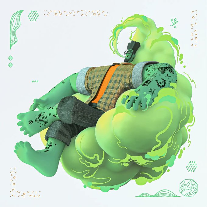 'Loungecloud' is an illustration I did more than 15 years ago, and I always thought of remixing it and making a 3D version of it. Posting the original 2D artwork under this. #c4d#3D#illustration#chill#art#ArtistOnTwitter