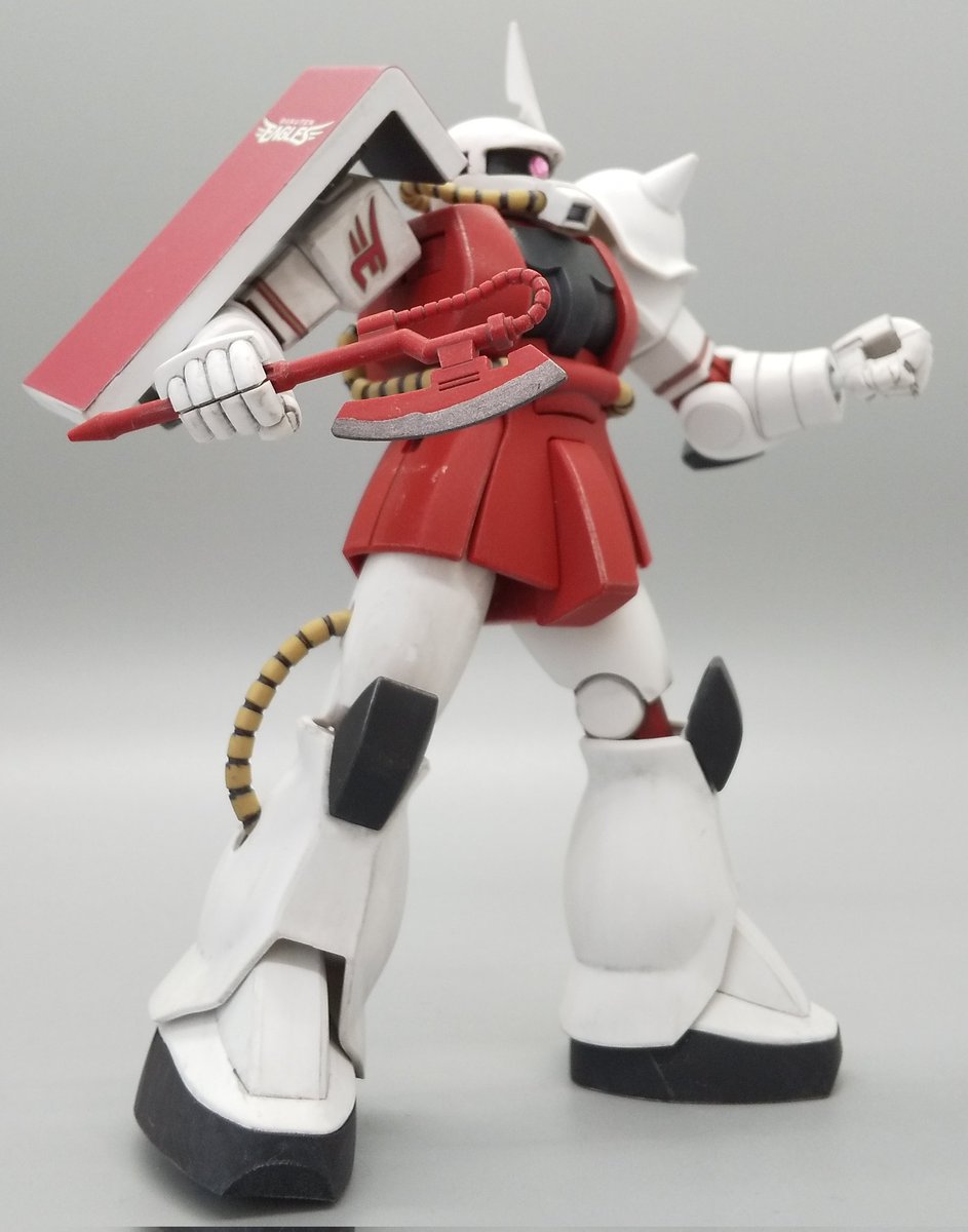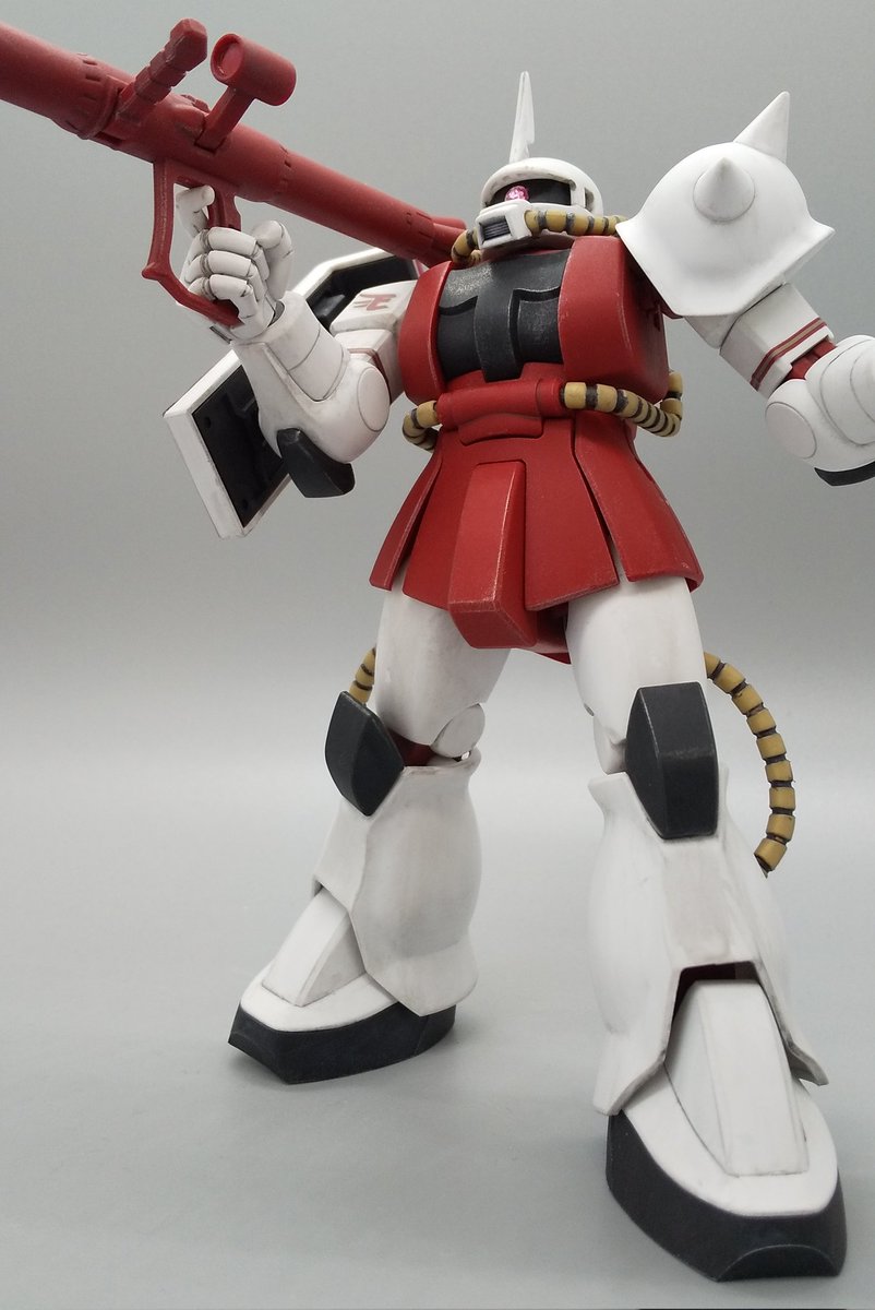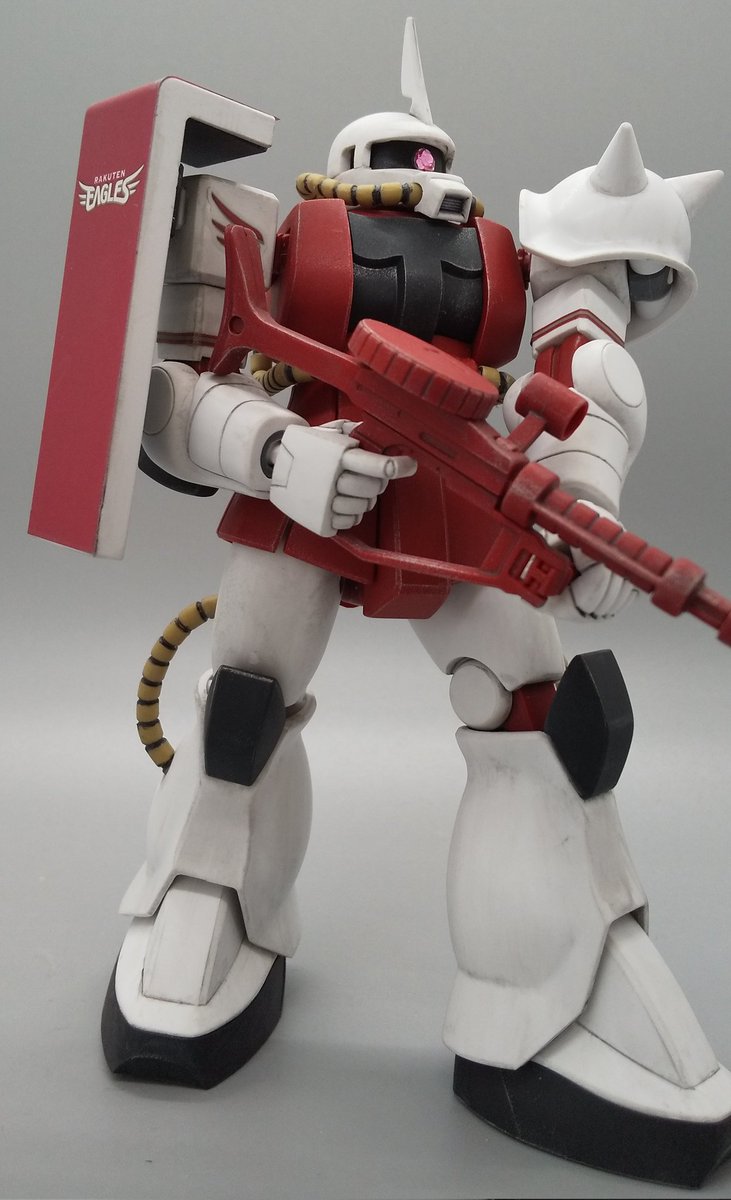 ザクⅡ(イーグルスVer.)が完成しました。エッジ部はウェザリングマスターのシルバーを軽くこすって強調。フィルタリング塗装する前のつや消しを厚く塗りすぎたところがあってちょっと失敗。 #ガンプラ
