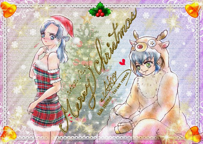 #伊アオアドベントカレンダー2022 COCOさん✨素敵な企画ありがとうございます🙏🥹 12月21日① あこが担当します🙌 Xmasの準備はもう出来たかな? 嬉しそうにプレゼントのチェックしている🐗💕 🦋は🌸🎀たちに進められて買った衣装のスカート丈が気になるみたい☺️💕 メリクリ✨🎅🎄✨