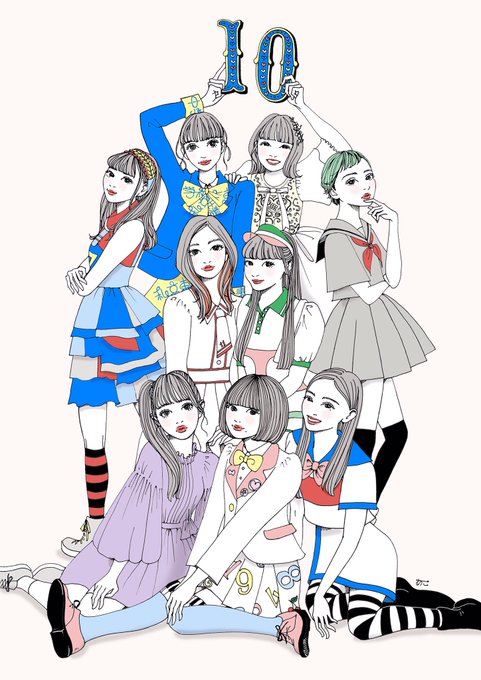 #エビ中メジャーデビュー10周年 #ココユノノカエビ中加入1周年 おめでとうございます㊗️❣️❣️❣️ メジャーデビュー以降のシングルの衣装を出席番号に当てはめて描いてみました🥰(ex.真山=3番目のシングル=梅) 大好きなエビ中の益々のご活躍、これからもたくさん楽しみにしております🦐✨