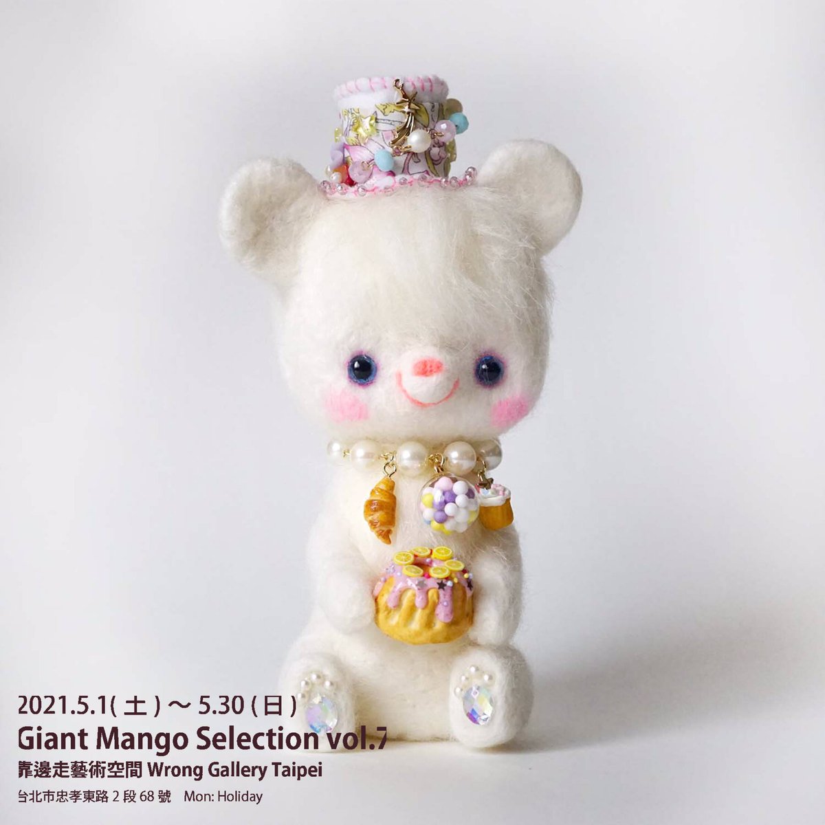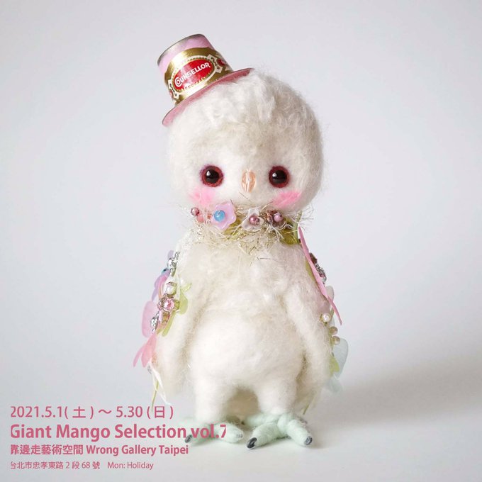 1 45 台湾に行く白いフェルトドールの動物達。 フェルトドールのフクロウ 、シロクマさん🐻❄️小さな飾りもたくさんついてるんだよ。 #羊毛フェルト #羊毛 #フクロウ ⭐️Giant Mango Selection vol.7@Wrong Gallery 21/04/29 08:06