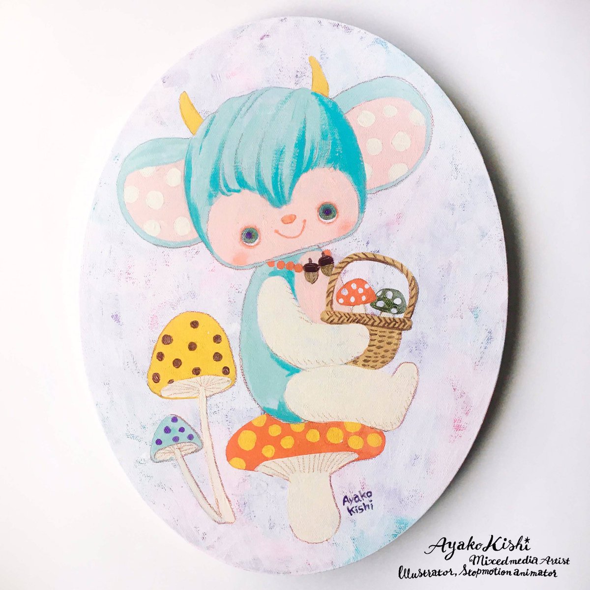 開催中の @knam_museum での個展に展示されている絵画作品です。 モンスタールルを描きました。 今月13日まで。 #モンスタールル #きしあやこ