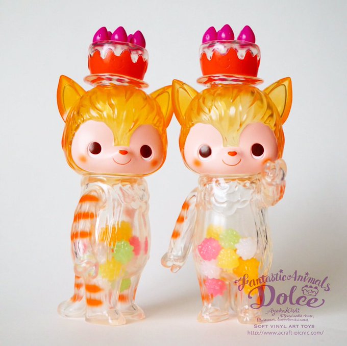 おはよう!ドルチェです。 ハロウィン🎃カラーのオレンジ🧡ドルチェだよ。 お腹には、可愛い金平糖入っています。 今月スタジオが撮影中なので、10月にminneで販売するよ!#ソフビ