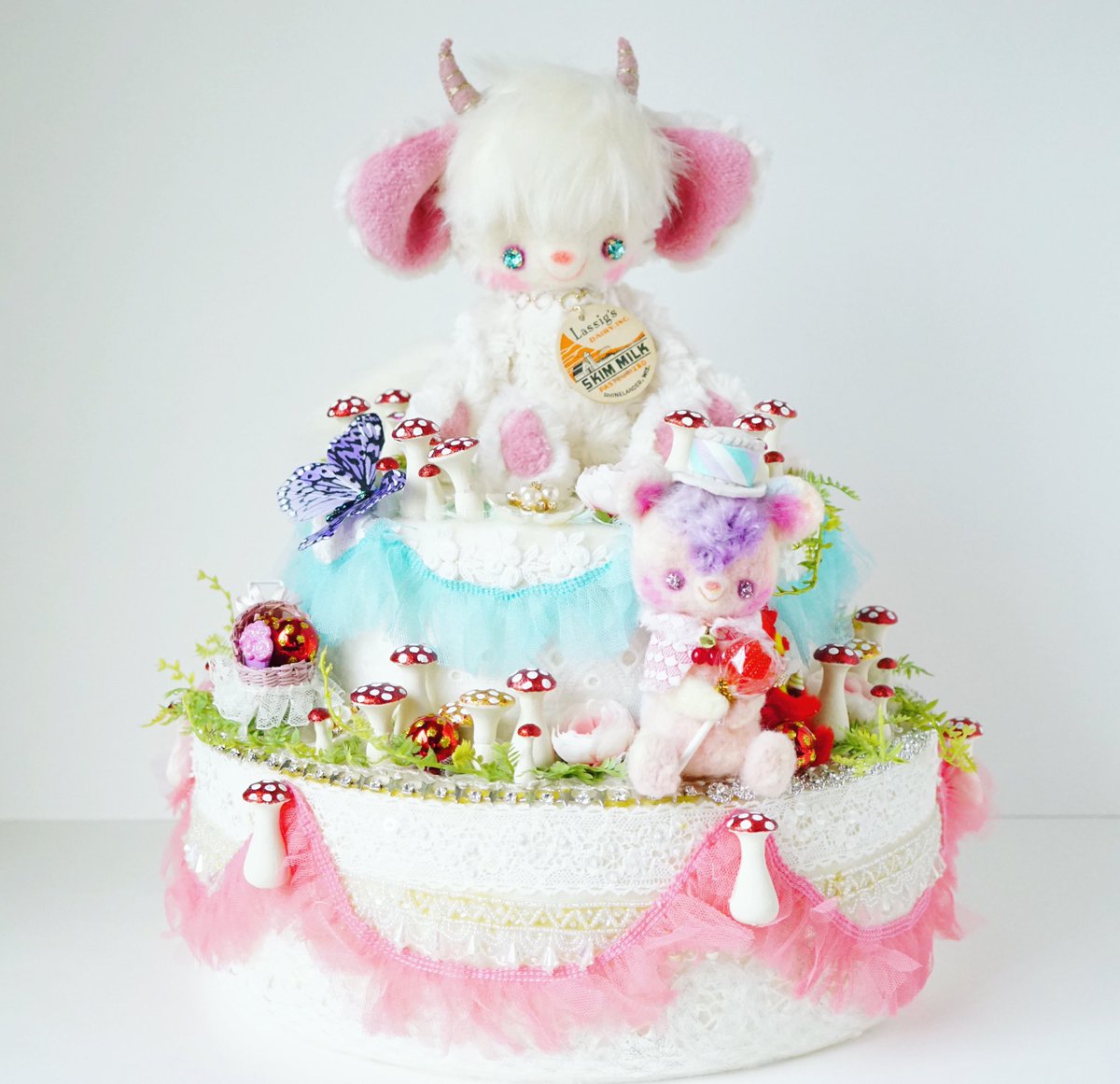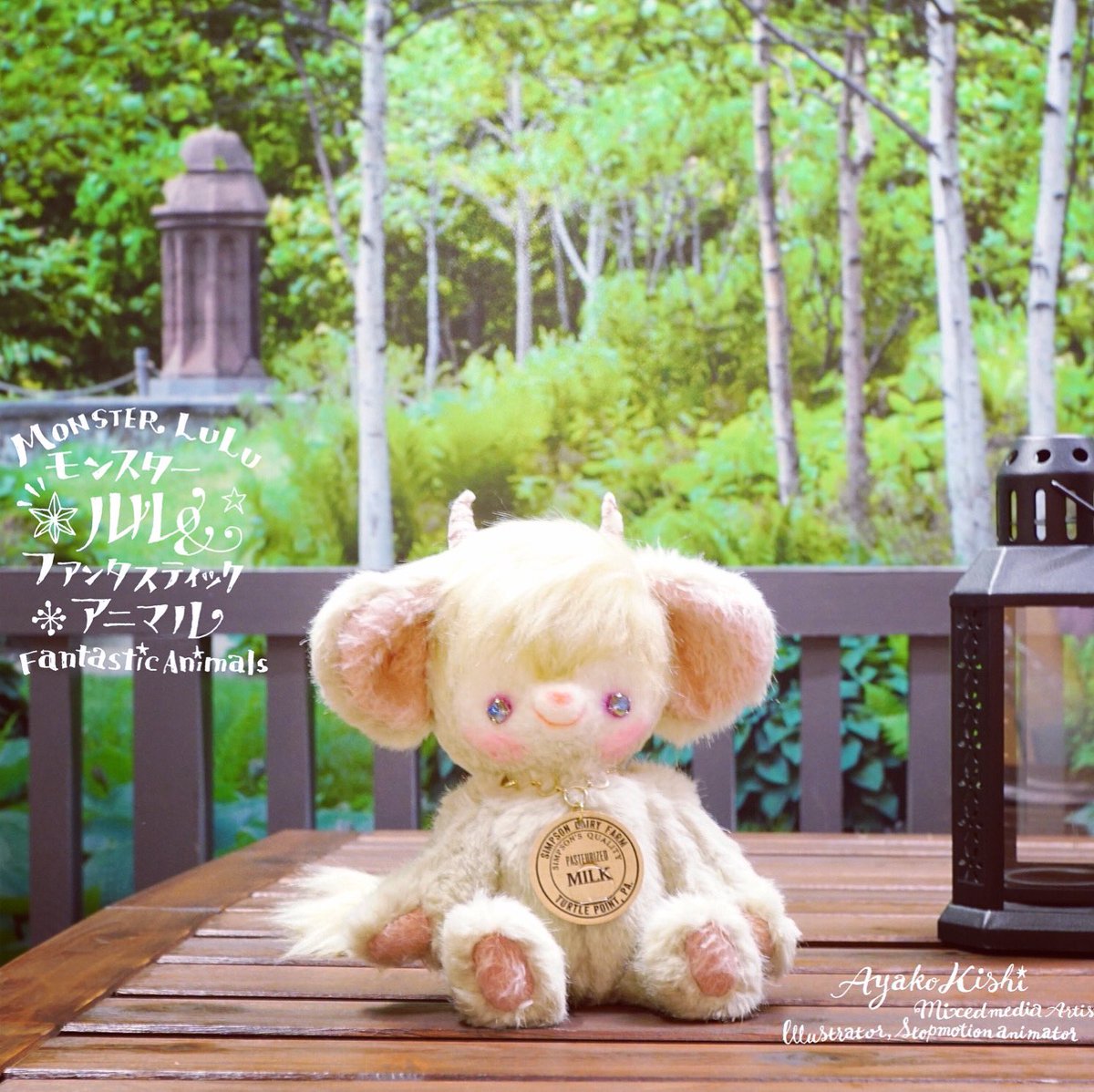おはよう!ルルだよ。 ケーキ🎂大好きだよ。ホールケーキ、一つ丸ごと食べてみたいね⁉️ #モンスタールル #ぬい撮り #羊毛フェルト #きしあやこ