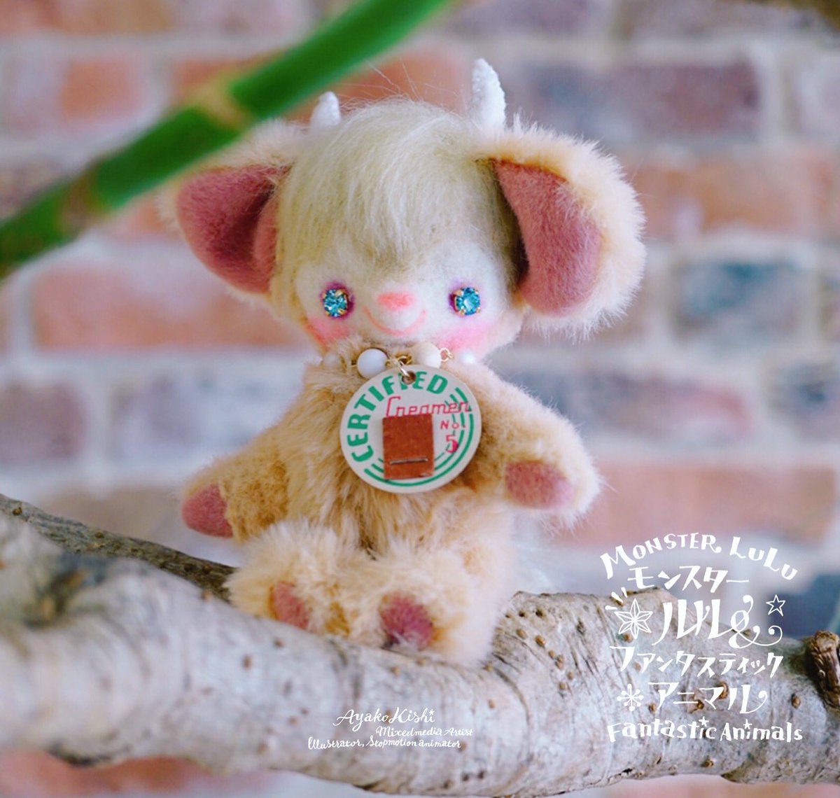 台湾に行くフェルトドール。 ツノがないモンスターちゃんです。 スイーツの帽子やパーツも全て制作しました。 #羊毛フェルト #きしあやこ