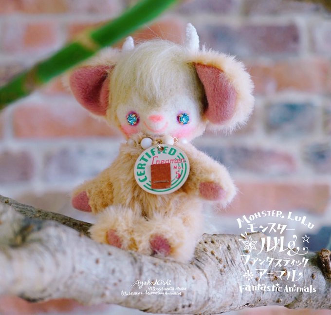 1 26 台湾に行くフェルトドール。 ツノがないモンスターちゃんです。 スイーツの帽子やパーツも全て制作しました。 #羊毛フェルト #きしあやこ 21/04/24 09:06