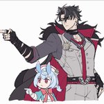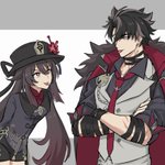 my two fav characters with similar palettes blepping each other, also hbd hutao! #原神 #HuTao #Wriothesley #Genshinlmpact