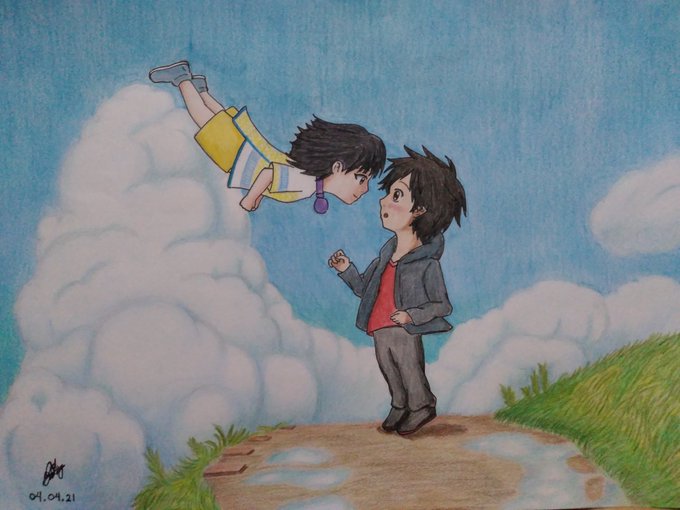耳をすませばのジブリシーンを描きましたが、登場人物は俺とまなか姫さまです。 みんなが気に入ってくれるといいですね。可能であれば、リツイートしてください。 #リトグリ #福本まなか #ghibliredraw #whisperoftheheart #animeart #animeredraw #artist #artistsupport #traditionalart @im__mnk 💜 twitter.com/ad_baking/st…