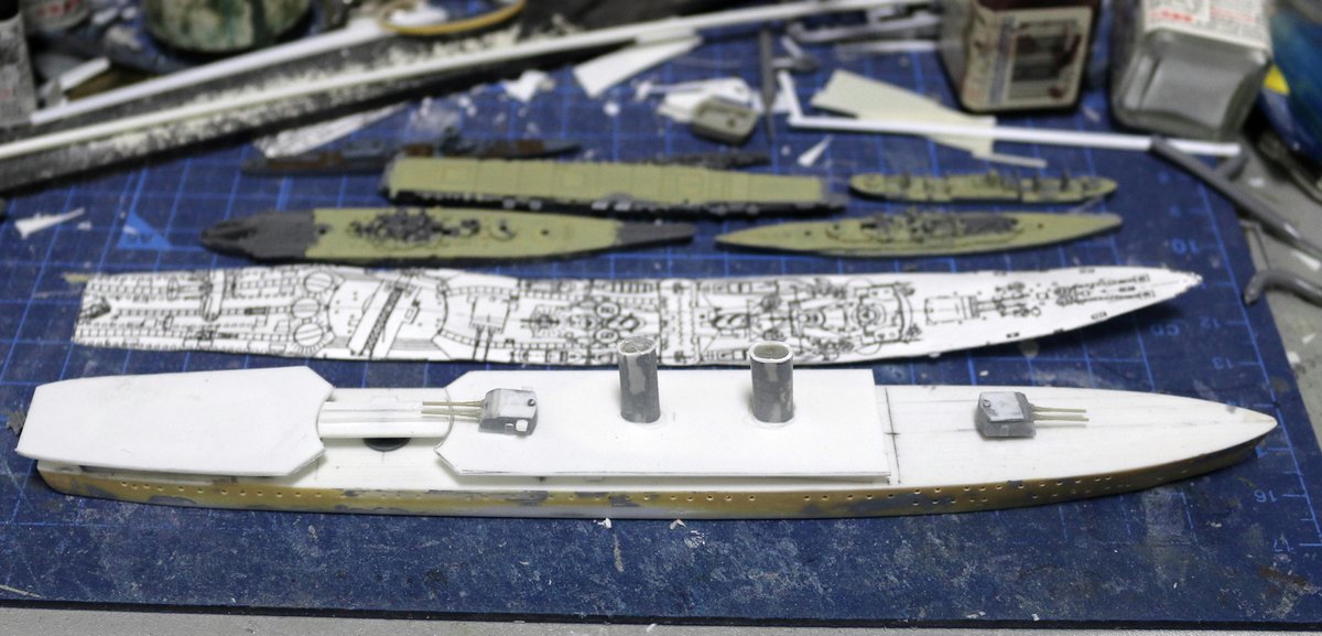 #今月作ったプラモ晒そうぜ 今月はこれ1隻だけです。でも、これで十分や! なんとか今月に間に合っただけでも上出来! キットじゃないけど、主材料がプラバン・プラ棒、エポキシパテだから、一応プラモではある(^^;) #艦船模型
