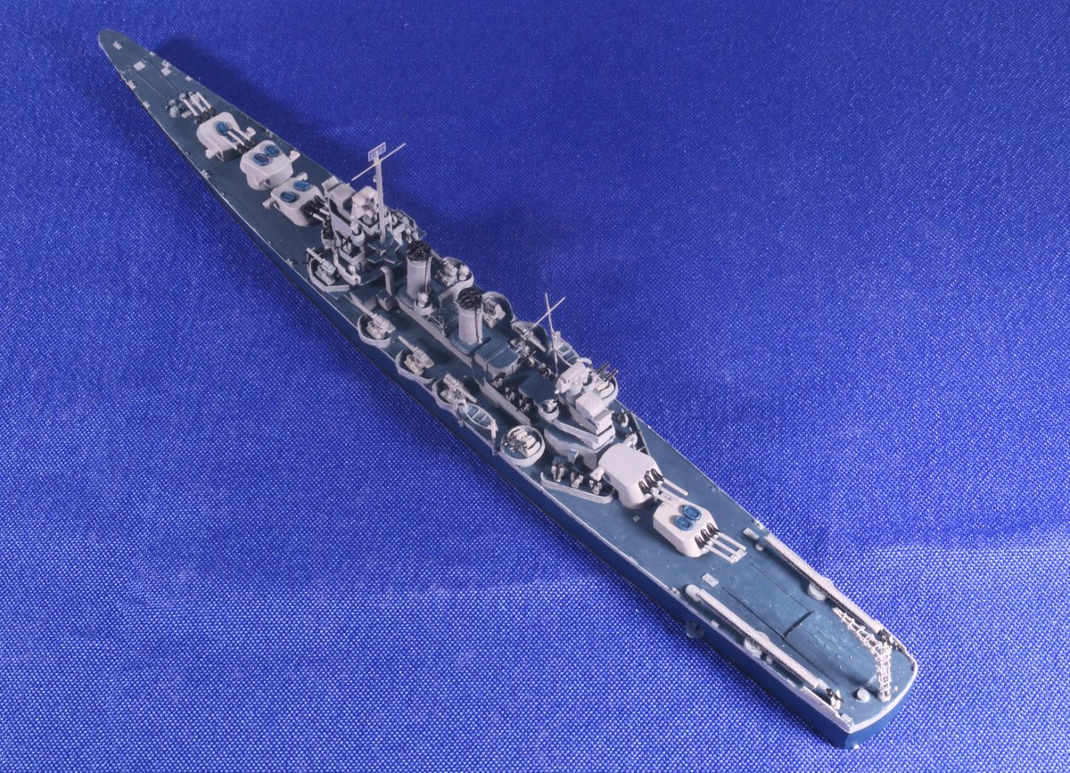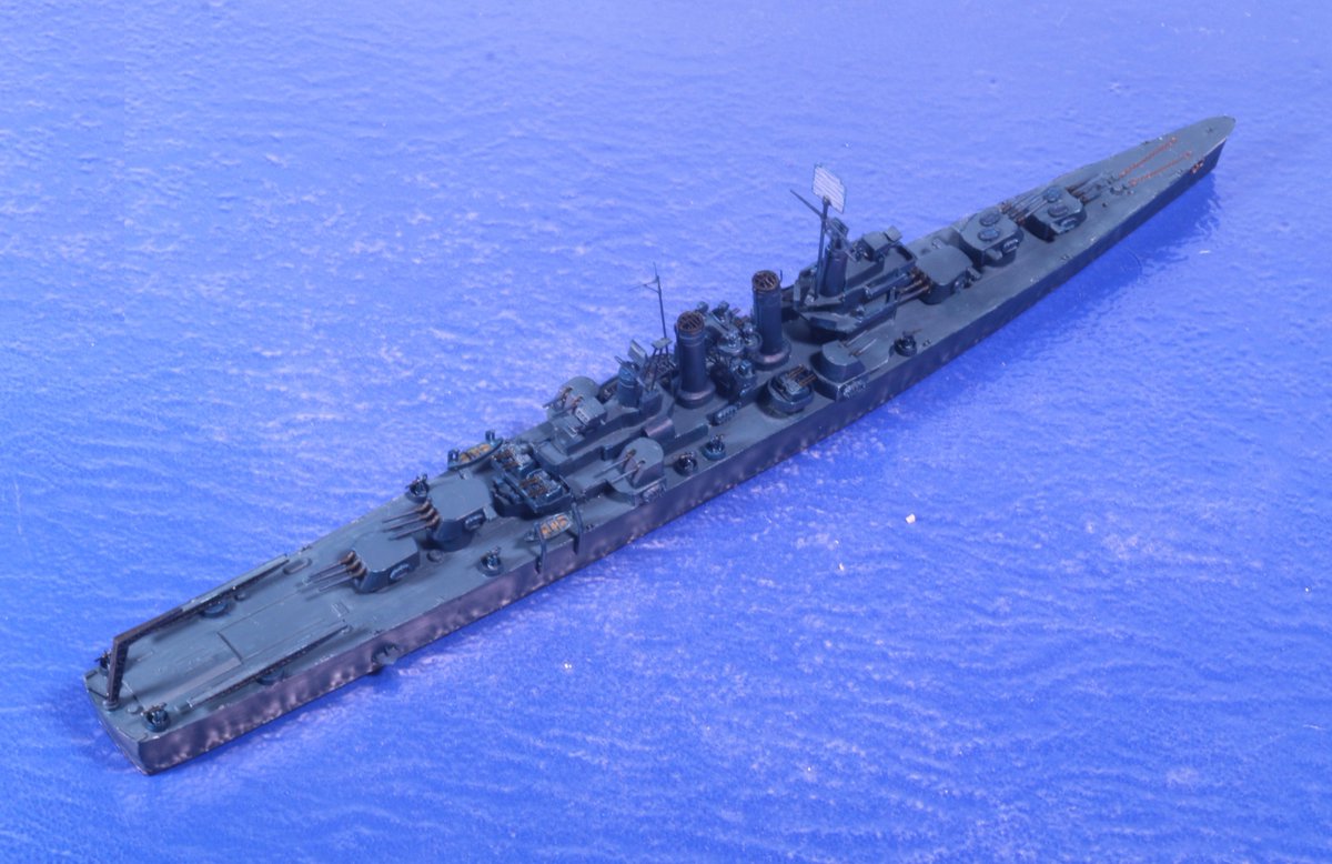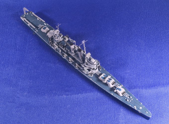 #今月作ったプラモ晒そうぜ #今日のヘレナ アメリカ軽巡「ヘレナ」1/700、完成しました! 艦スペで衣島先生が示唆されていた、ピットロードのクリーブランド級からの改造、何とか実現できました。 ガレキを選ばず、他キットから改造するなら、クォリティ的にはこれが最善手でしょうけど…🤔