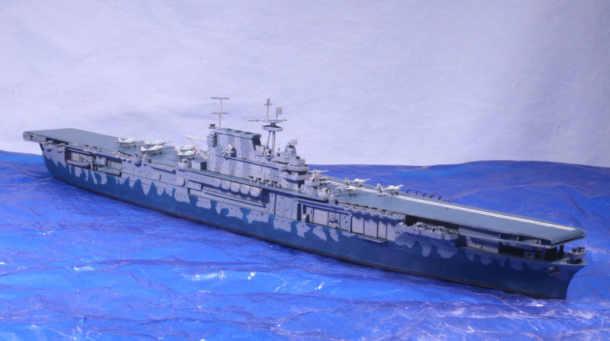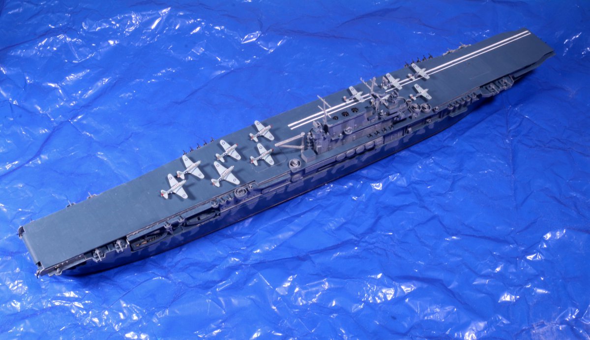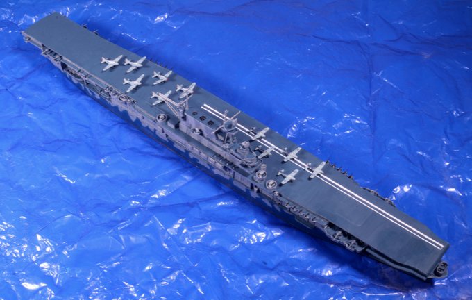 #今月作ったプラモ晒そうぜ アメリカ空母「ホーネット」完成しました! タミヤのキットはものにならんと判断、ピットロードのを改めて入手したんですが、これ実質トランペッター、それも2000年代のは設計がよくないのか、組みにくかった。塗装はそれなりに楽しかったが…
