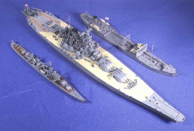 #今月作ったプラモ晒そうぜ 今月はそこそこがんばった(´・ω・`) 駆逐艦「冬月」(フジミ「秋月」を改造) 戦艦「大和」ピットロード 給油艦「厳島丸」フジミ この他、部品紛失で一時中断したもの、鋭意建艦中なものがいくつかありますが、どれも明日中に完成は無理じゃな。 #艦船模型