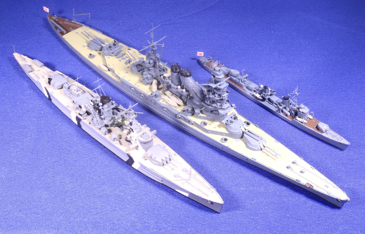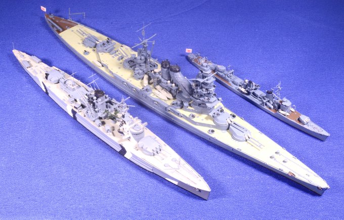 #今月作ったプラモ晒そうぜ #艦船模型 装甲艦「リュッツオウ」(フジミ) 天城型巡洋戦艦「愛鷹」(フジミ「巡洋戦艦赤城」を改造) 駆逐艦「早潮」(フジミNEXT「不知火」より) 今月はフジミ一色、でした(^^;)