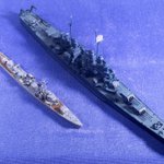 HMS ベルファスト 1/700、完成です。 Trumpeterの新キット。偽ジョンブル様が指摘されていた問題点を極力修正する方向で、我がコレクションの工作水準に合わせて調整した感じですか。 写真4はシェフィールドと。同スケールのこの2隻を並べられて感無量😊 #今月作ったプラモ晒そうぜ #艦船模型