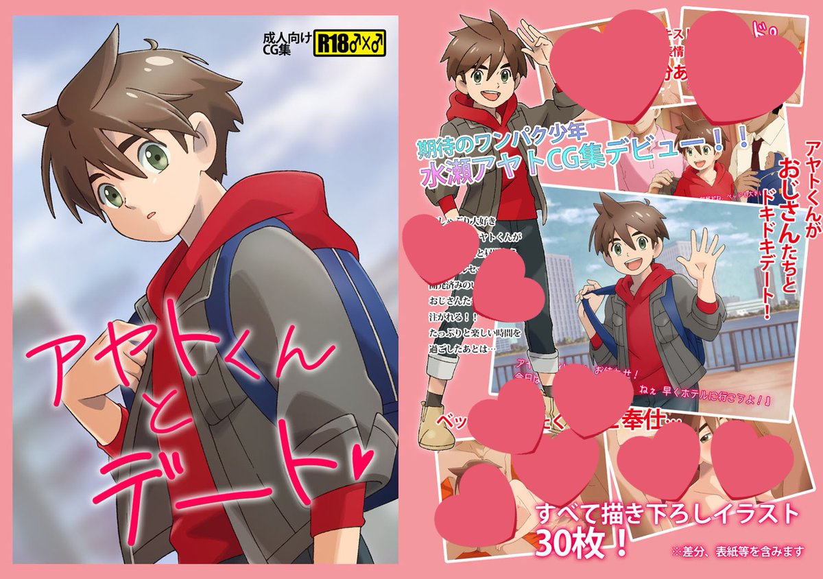 オリジナルキャラクター水瀬アヤトの初イラスト集『アヤトくんとデート』BOOTHにて販売中です。 描き下ろしイラスト13枚+テキスト差分 おじさん2人と楽しいデートをテーマに描いたイラスト集です。 goshogawara.booth.pm/items/4545239
