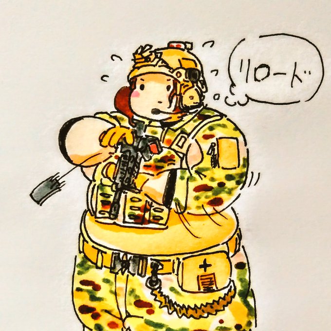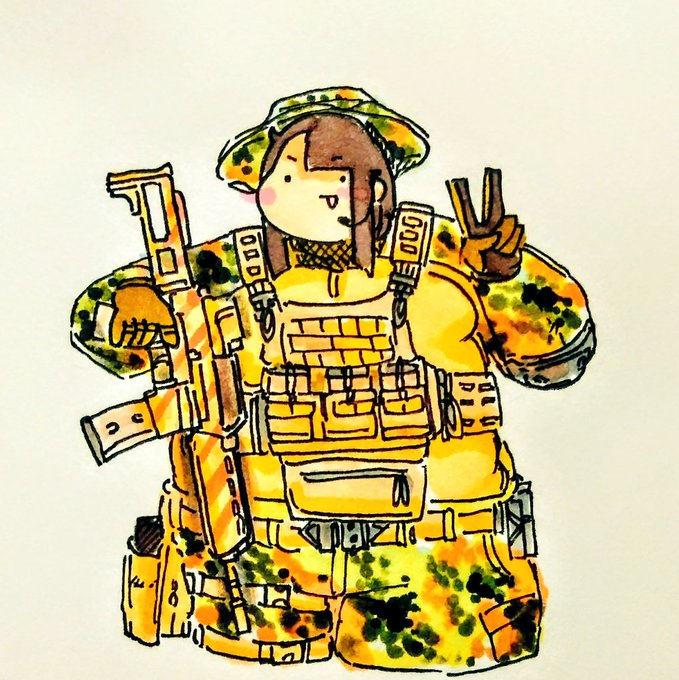 #再掲でもいいのでとにかく陸自を貼ろう #過去絵 #イラスト 雰囲気陸自っぽいの迷彩の子たち!