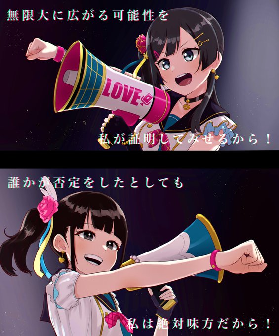 指出毬亜さん、エマ・ヴェルデちゃん宛のフラスタにて、指出毬亜さんのイラストを担当させていただきました! エマちゃん担当のれめさん(@RemeKuuKuu )との共作のパネルと、PASTEL衣装のような色とりどりのお花で素晴らしいフラスタになっております…! 現地にお越しの方は是非ご覧くださいませ…☺️ twitter.com/430lu5/status/…