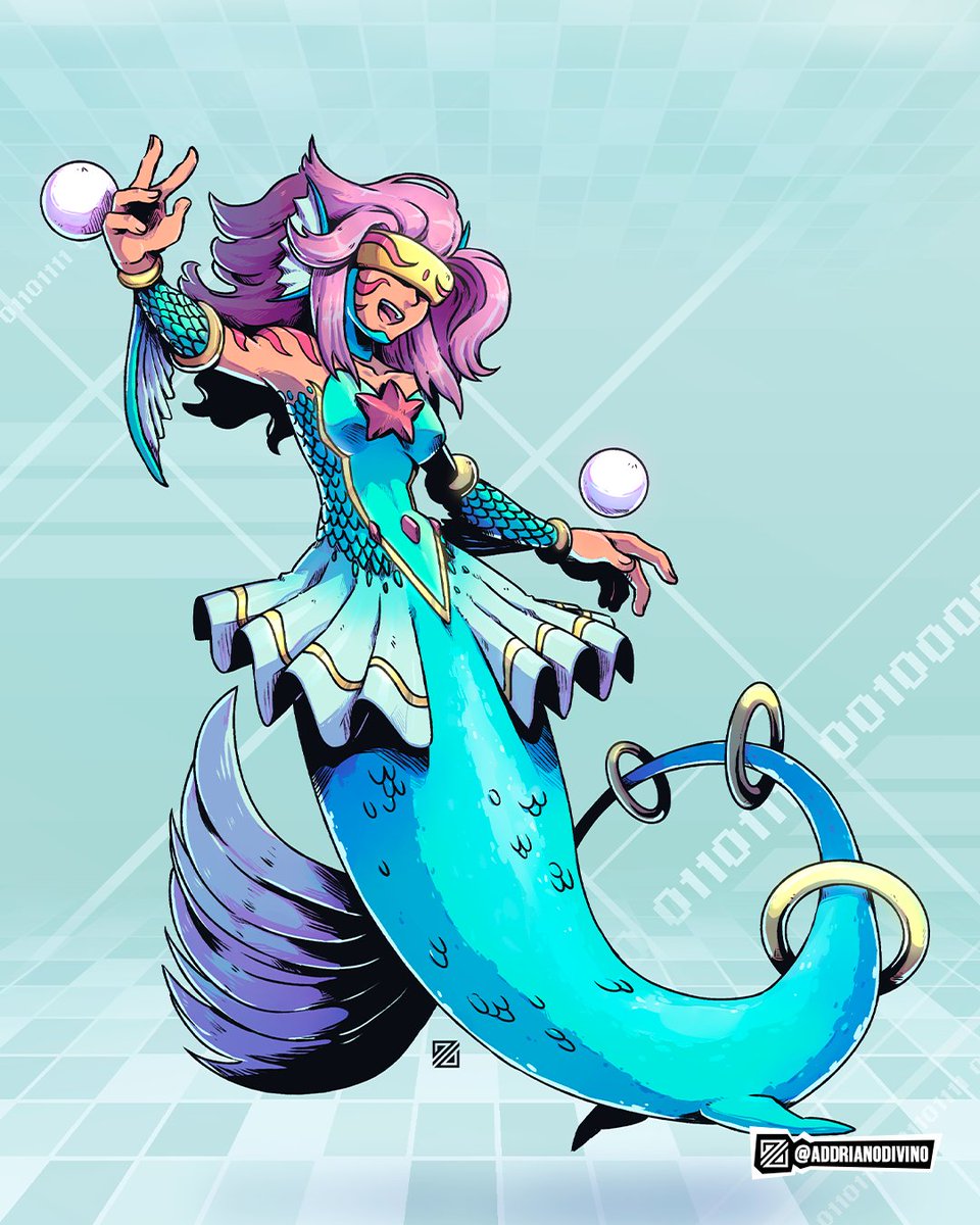 #Digimon #Commission and another entry in the #mermay This is Meyrenmon, a Champion Level digimon that loves to dance and travel!