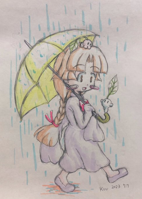 5 26 ウチのコrkgk。 「せっかくだから何か七夕っぽいのを描かう」…と思って描いてたハズなのに気がつくとただの雨降りの絵になってゐたYO(愚) …あと傘は難しいネ(ヘボrkgkマン) 23/07/07 23:56