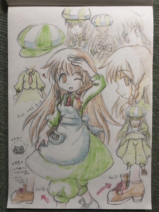 1 8 先日、ウチのコ今昔物語的なの見かけたので便乗。 確か(手隠れ)(三つ編み)の縛りで描いたrkgkがなんとなく気に入りそのままウチのコの1人に。 今のコンセプトは上記+立体に抗う2次元的表現(スネカミ的なもみあげ?やほっぺの漫符的なのとか)などだけど多分適当。 ←2018頃? 2022〜2023→ 23/07/31 00:04