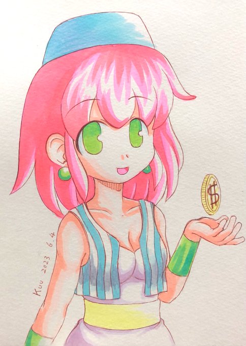5 26 何かをモチーフにしたrkgk女子。 元ネタは最近のにも一応出てるケド「勇気と愛気」な世代の人にはわかってもらえたらイイな〜…なヤツ。 23/06/04 00:33
