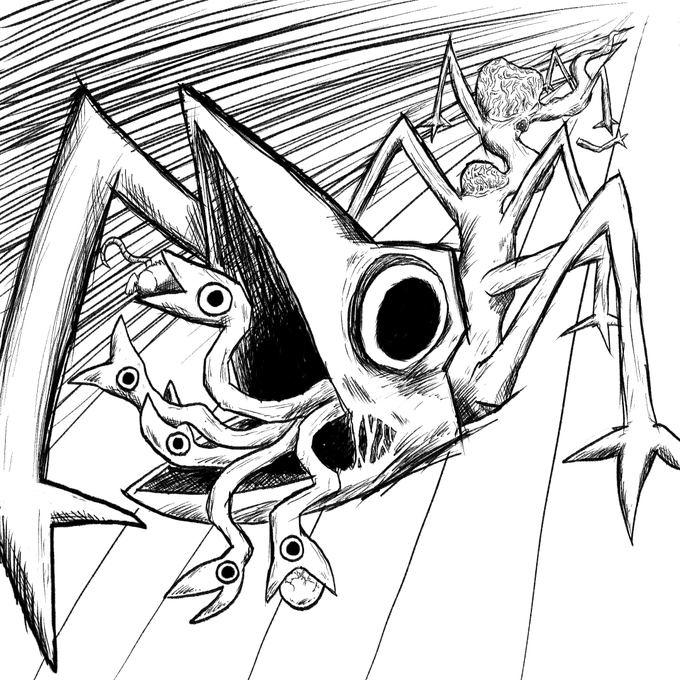 20 - Bluff | It's a sky serpent! It's a plane! Nope, an extraterrestrial hijacked a military junkyard and turned into this thing! Can you spot its true form? #inktober #inktober2022 #drawing #art #rkgk #illustration #イラスト #procreate