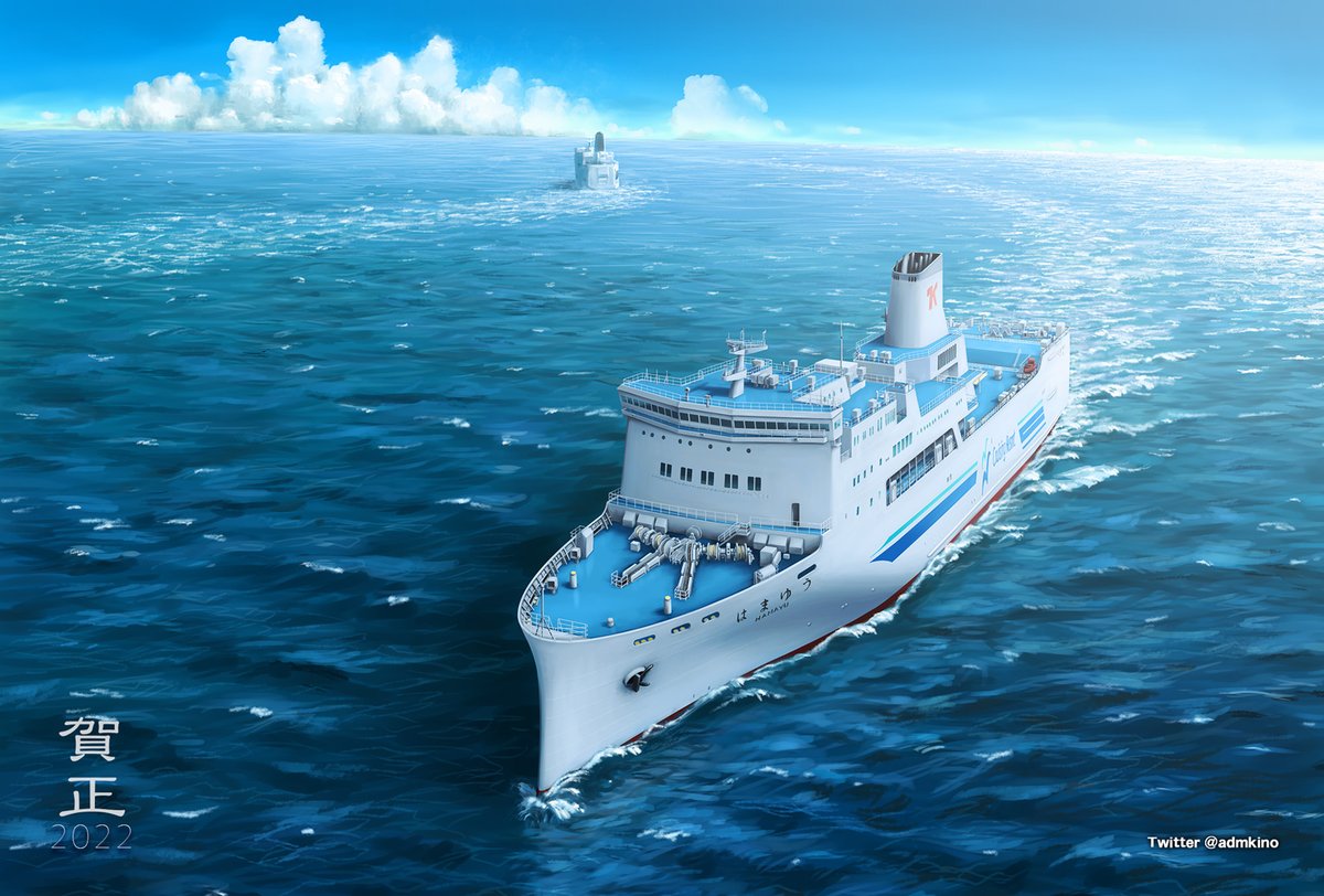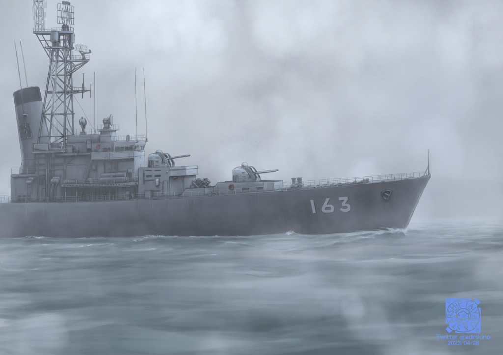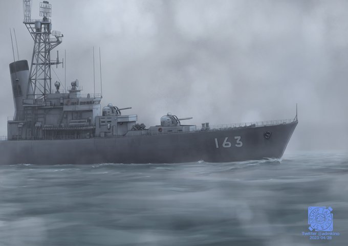 【閑話休題】あまつかぜ|pixivFANBOX admkino.fanbox.cc/posts/5830797?… 上京して40周年の記念絵。高松、徳島経由で上京する際大時化に見舞われた東京行きフェリーが朝もやの中東京湾に入った際に窓から見えた並走する護衛艦あまつかぜを記憶を重ねつつ描きました。いやもう船酔いで酷い目にあったw