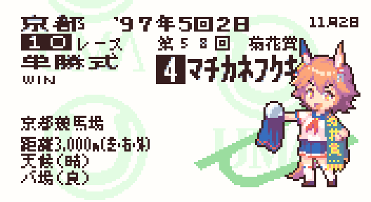 3 4 馬券風でマチカネフクキタル #ウマ娘 #ドット絵 23/06/14 20:02