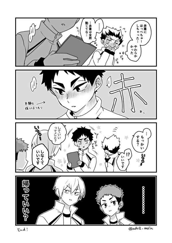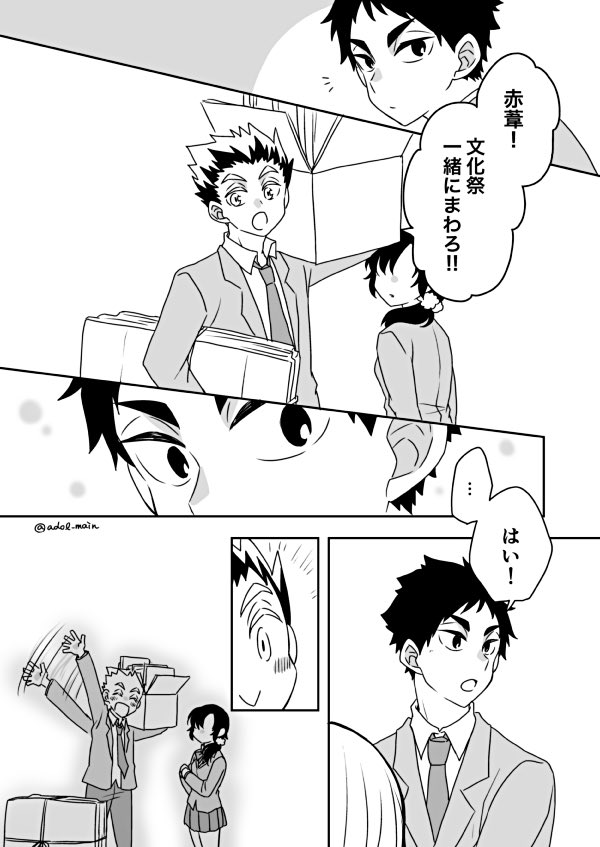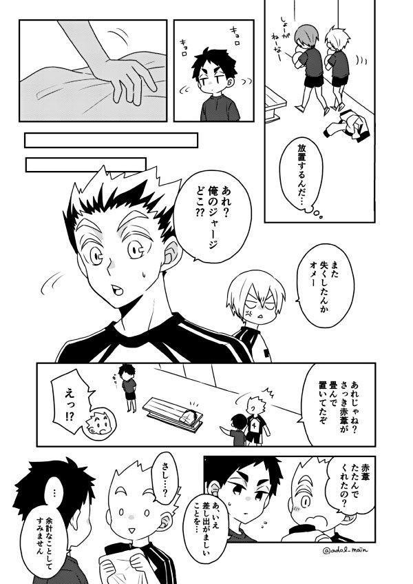 【腐】8/21兎赤新刊サンプル【通販有】 | あどる pixiv.net/artworks/10023… 長めのサンプルはぴくしぶをご参照下さい。 ぼさんの二次創作本を集めてるのがバレるあしくんの話です(1/2)