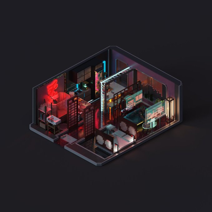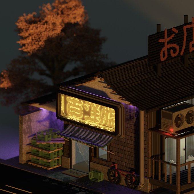 Yasahiro’s house // night render 🌙✨ #magicavoxel #render #isometric #3d #voxelart #art #voxelartist