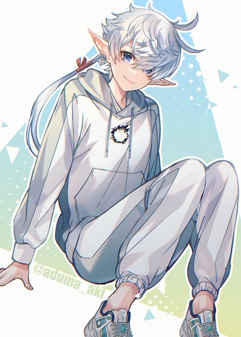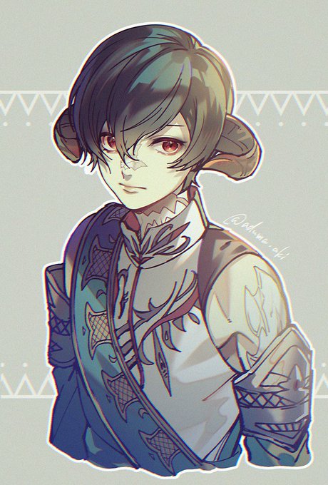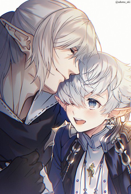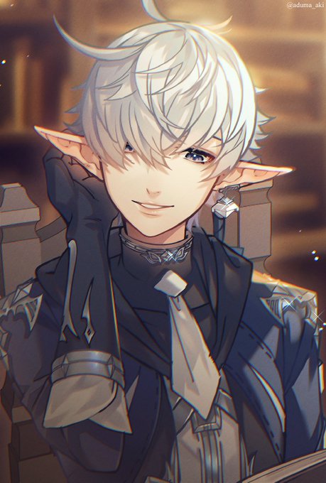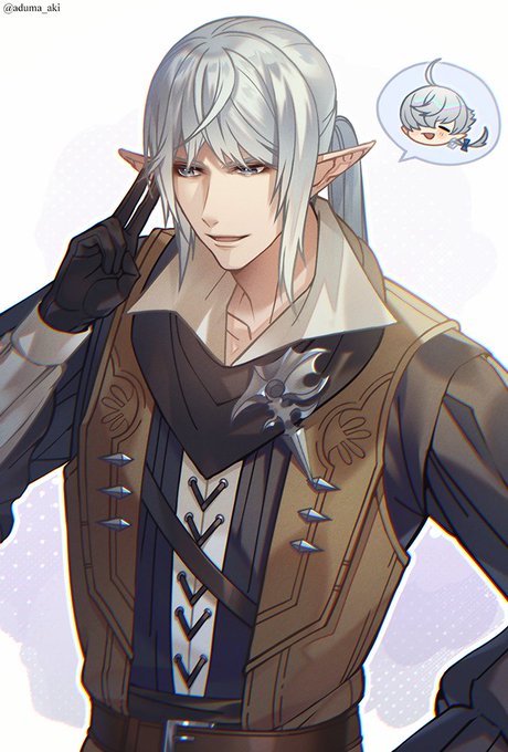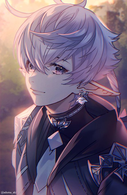 光の回顧録の、髪の毛若干下めに結んで三つ編みを前に持ってきているアルフィノくん可愛いな~という落描き😚