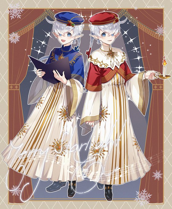 ✨🎄星芒祭服の双子ちゃん🎄✨ 年内間に合って良かった~😭描き納めです! 良いお年を!!! #FF14 #FF14art