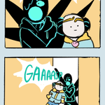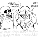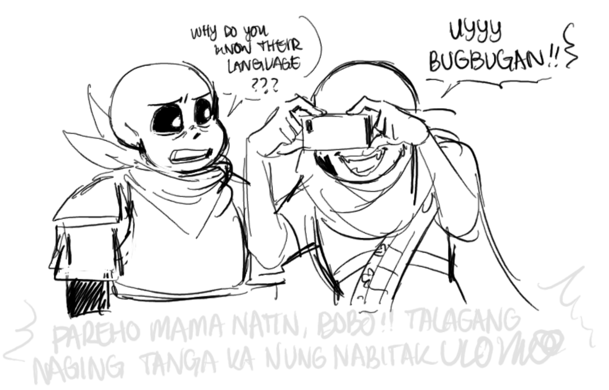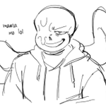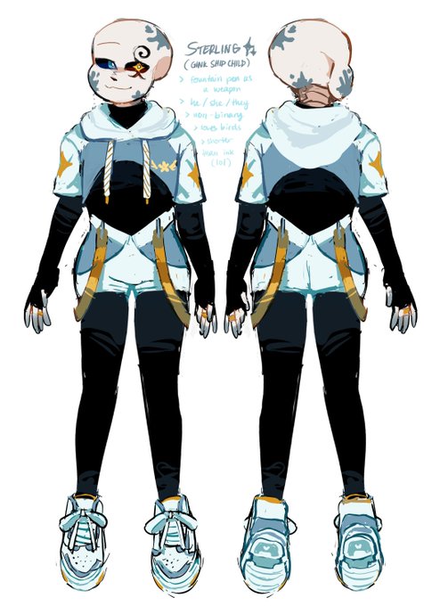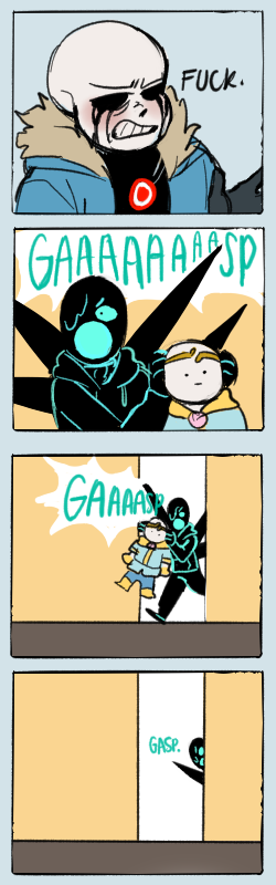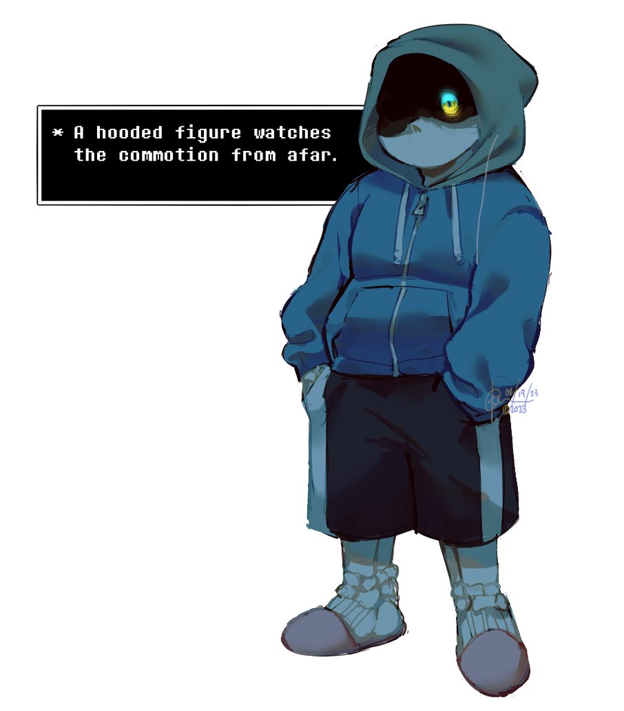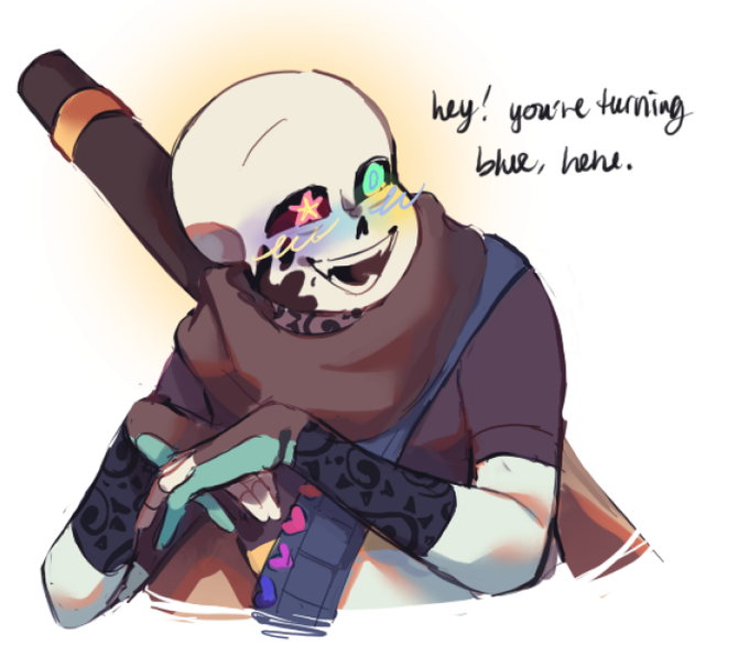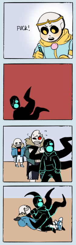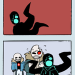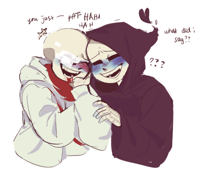 dont think i posted this here but i have a headcanon that dust's face, without his hoodie on, is ALWAYS off frame or hidden and its so silly. like this