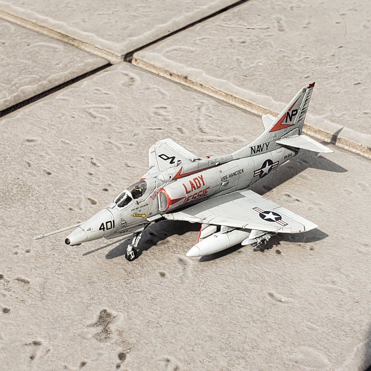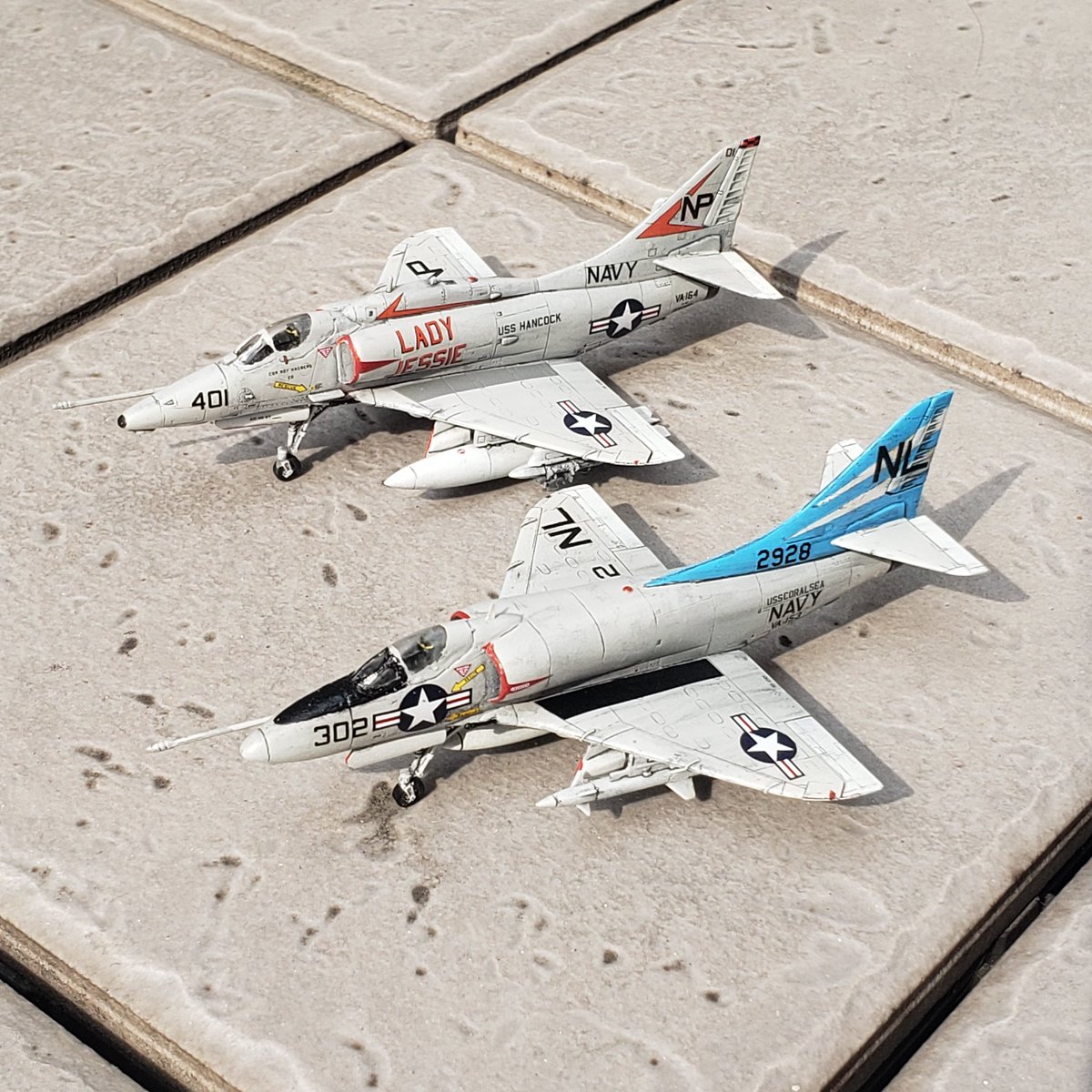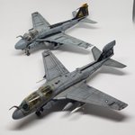 #今月作ったプラモ晒そうぜ #144スケモ 3機です。絶好調! ぴよぴよさんの信頼に応えるために「自分が一番カッコいいと思うようにしよう!」と励んだナイトファルコン、A-4初飛行の日に完成したA-4F、30年前から作りたかったA-4B(当時は1/72)。 思い入れたっぷりの3機です。