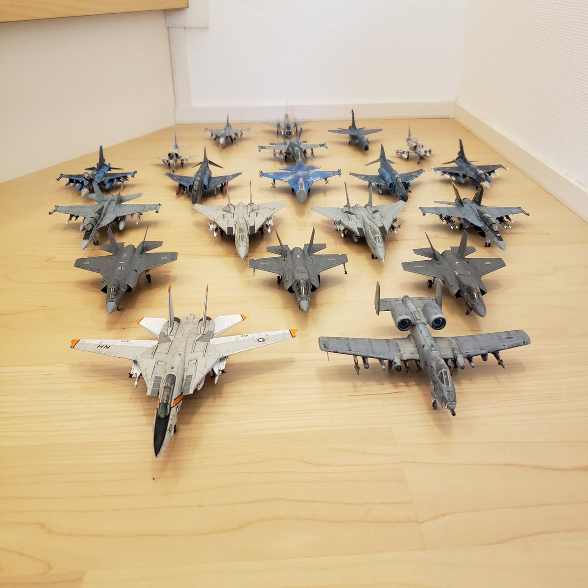 #今年作ったプラモ晒そうぜ 今年は19機! そのうち、F-14が9機……他のも作れよ……( ̄▽ ̄;) TGM仕様を作ったり、VF-103をオシアナに持っていったり、F-111Bを作ったりと、色々やりましたねぇ…… 来年もエレファントウォークを目指して頑張ろう!💪