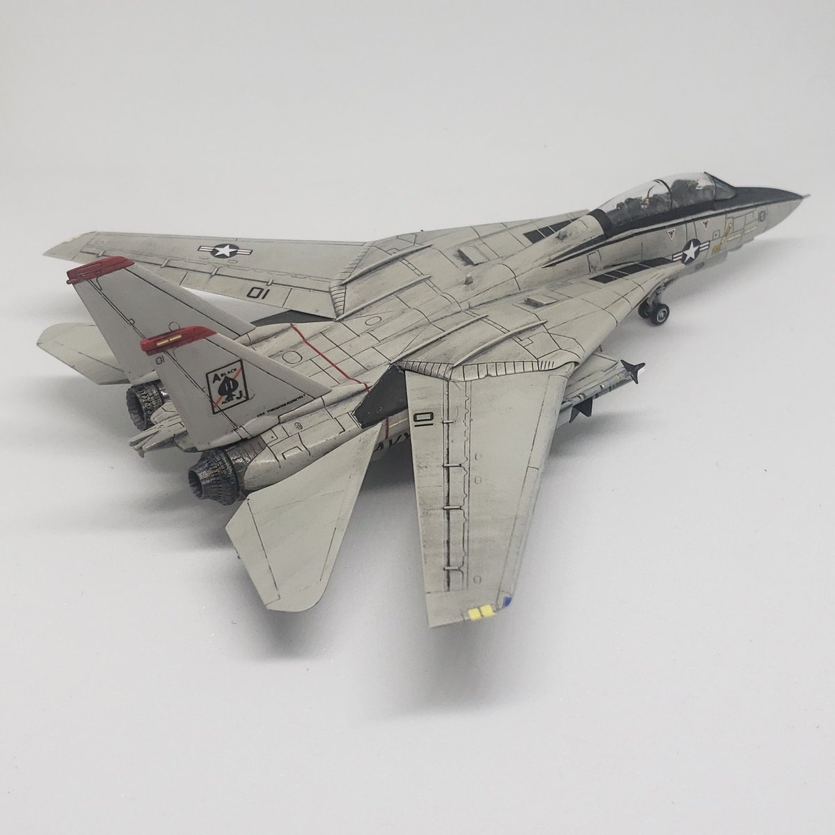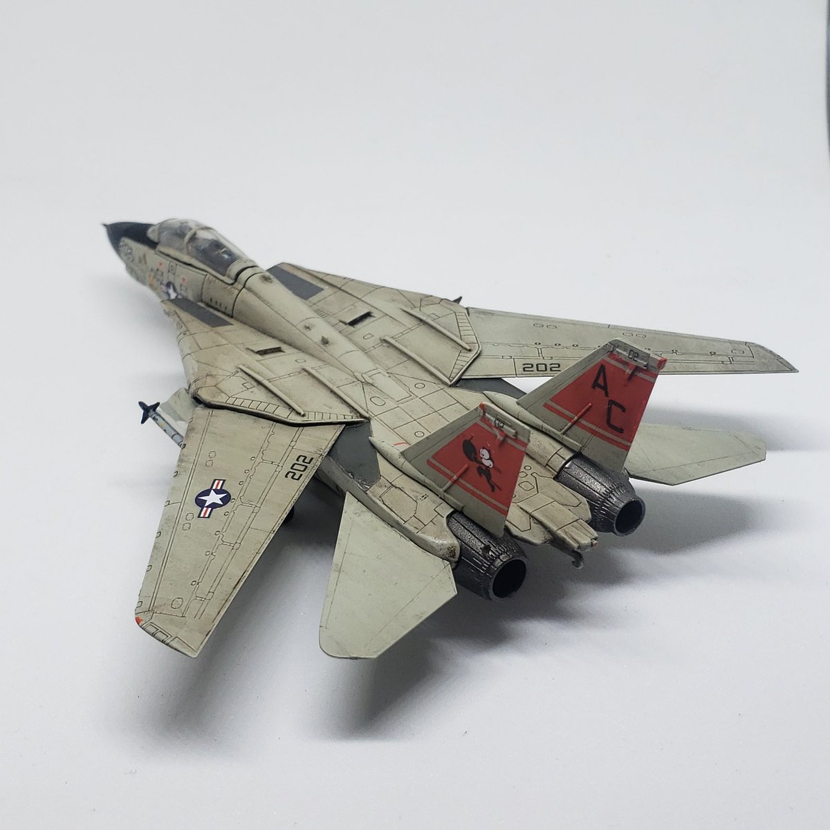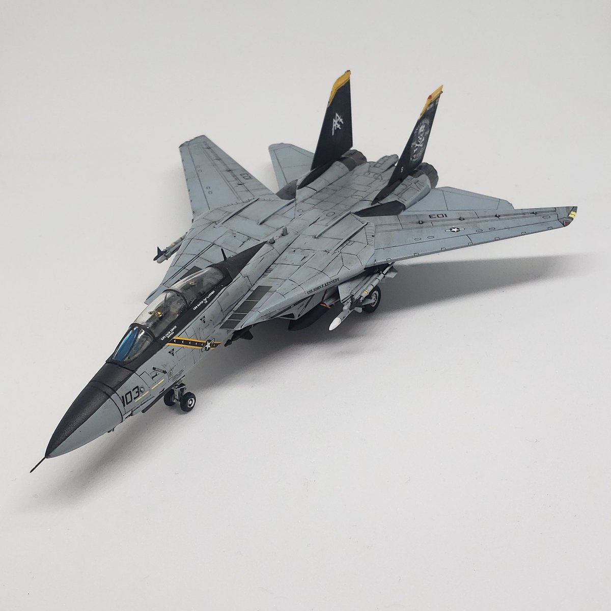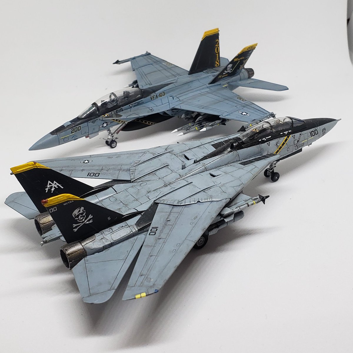 #今月作ったプラモ晒そうぜ トラペのF-14B、1機だけです。 でも、「トップガンマーベリック」へのモチベーションUPには最適でしたし、ライノの記念塗装機との並びはニヤニヤでした。 来月も頑張ろう💪