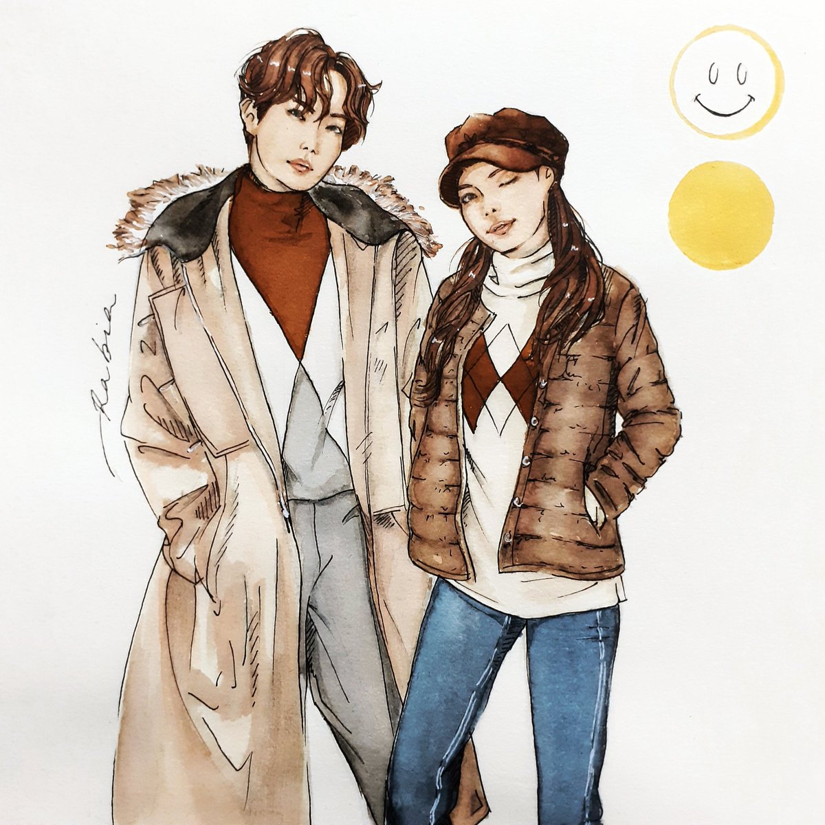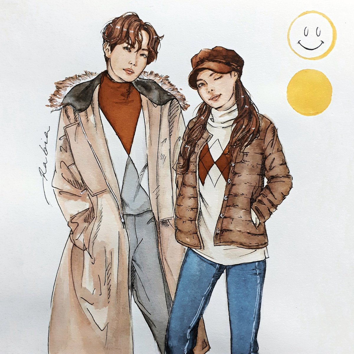 🌟siblings extraordinaire🌟 #Jhopefashion #btsfashion #Watercolor #painting #art #ArtistOnTwitter #mejiwoo #jungsiblings #btsfanart #autumn #hobicore