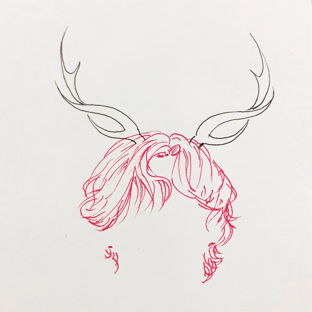 I'm late for #artmytober but here's my piece for day one, prompt: horns. I used an ink pen with scarlet ink to make the hair then applied water to give it the effect. #artmytoberday1 #inktober2020 #inktober
