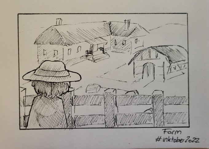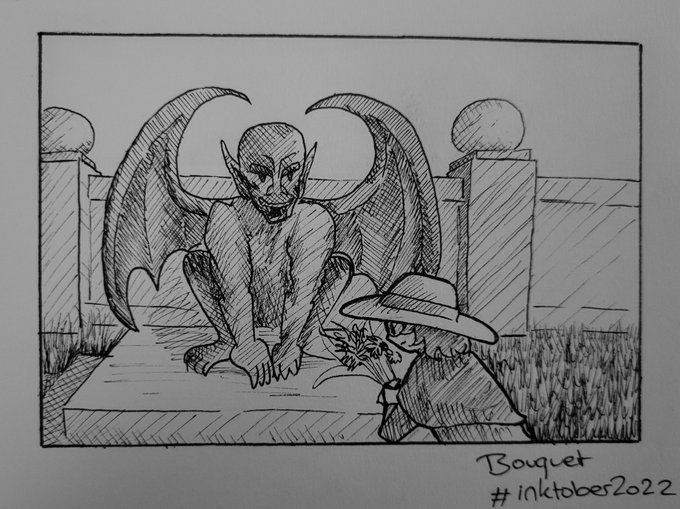 Joining Inktober this year with a challenge to create a little story around the character in the foreground. #inktober2022 #drawing