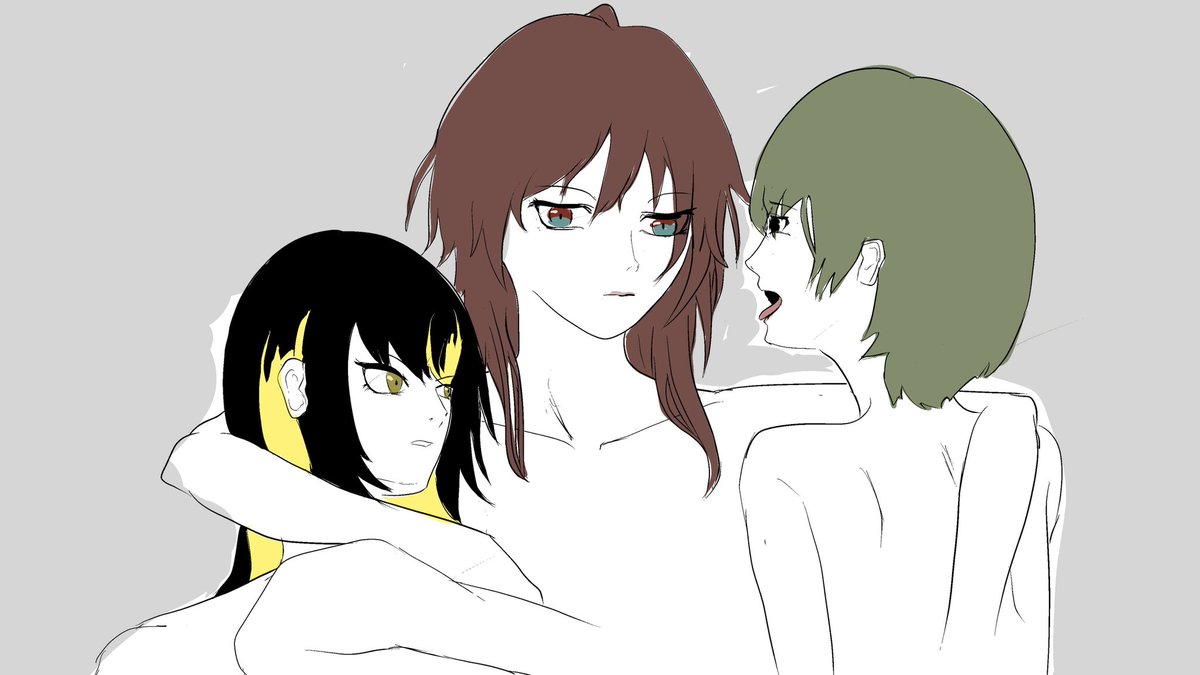 #シャニマス #緋田美琴 #七草にちか #斑鳩ルカ 落書き 構図の参考元はチェンソーマン7巻のあるコマ