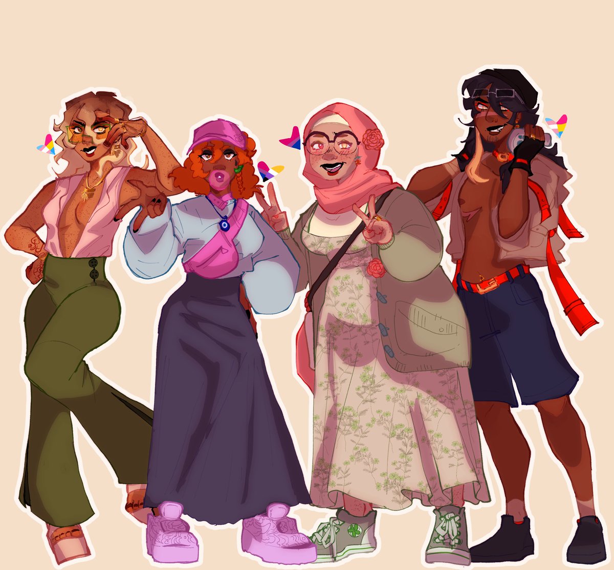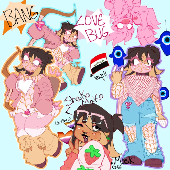 i yam here to share my own goofies!! 1- bree is lebanese!! goofy lil spider clown 2- the hive! consisting of cipher(somali), zouhair(moroccan), esar(turkish+korean) and arwa(palestinian)!! 3- ehsan (kuwaiti+khaleeji) 4- on the right, dunya is iraqi! twitter.com/aeniiac/status…