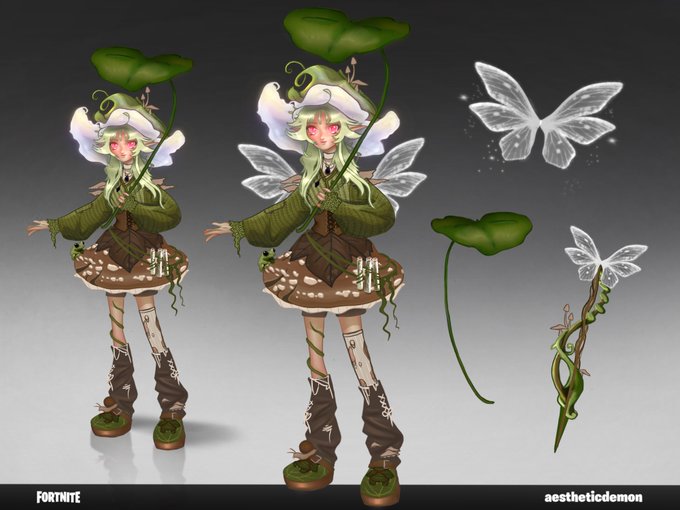 Meet Effie, the Garden Fairy 🌱🤍 Fortnite Skin Concept by aestheticdemon Including The Fairy Dust Backbling, The Garden Staff and the Leafy Umbrella #Fortnite #FortniteArt #ConceptArt