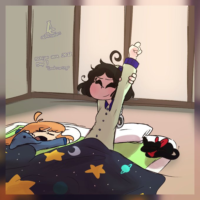 I'll be participating on the Nichijou week! Organized by @snowii_cat 《Day 1: Good morning》 #nichijouartweek2022 #nichijou #art #digitalart #日常