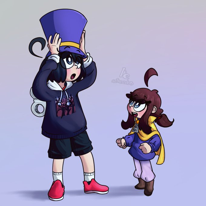 Nano didn't understand why the voice in her head was louder when she wore that little girl's hat but she decided not to question it « Day 6: Crossover » #日常 #nichijou #nichijouartweek2022 #art #digitalart #AHatInTime #ahit #crossover