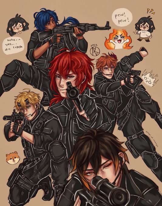 swat!au :DDD (may i direct your attention to eyepatch-less kaeya <3) don’t talk to me about the clothes i got lazy :’) #GenshinImpact #原神 #diluc #childe #tartaglia #kaeya #zhongli #thoma #DCKZ #genshinimpactfanart