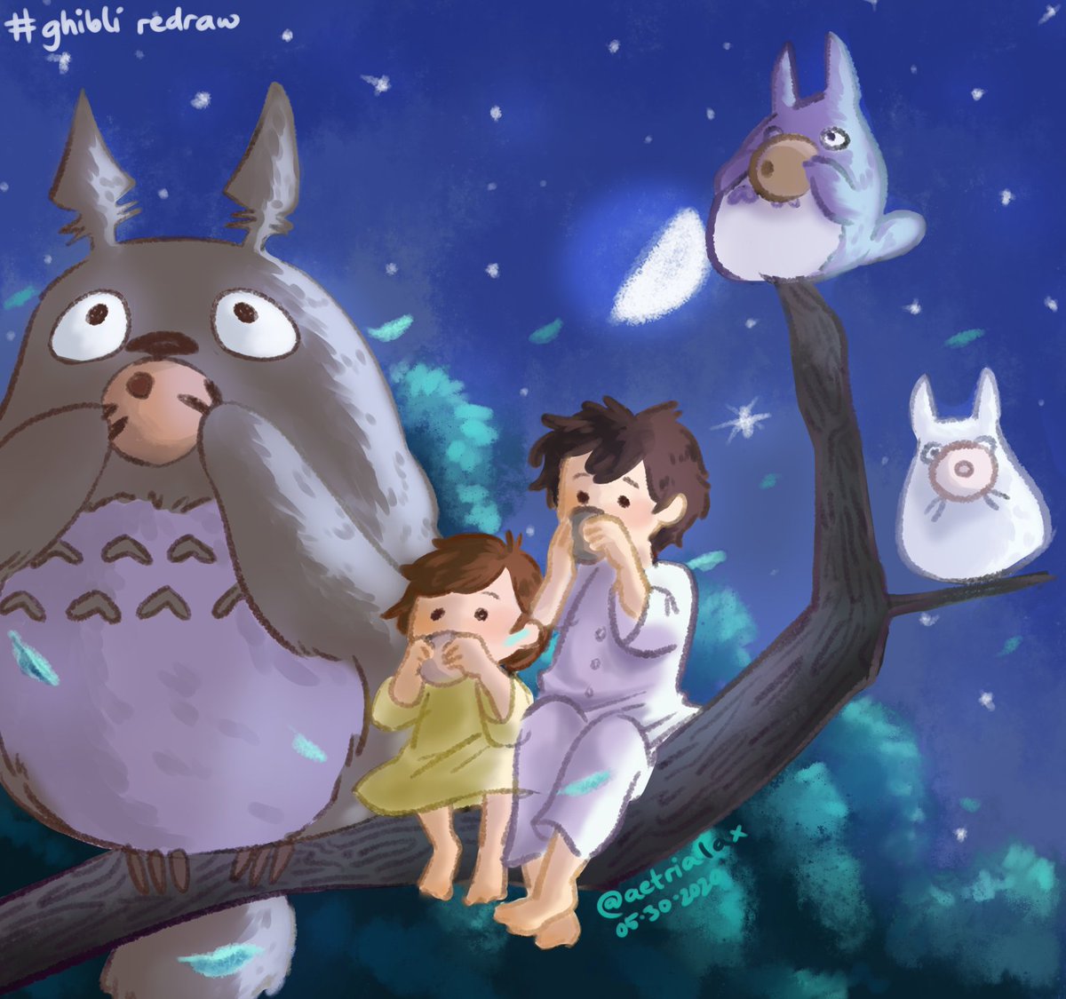 did a more cutsie n chalky style for the #ghibliredraw challenge the ref pic isnt exactly what i used but i cant find it anymore and this was the closest so-