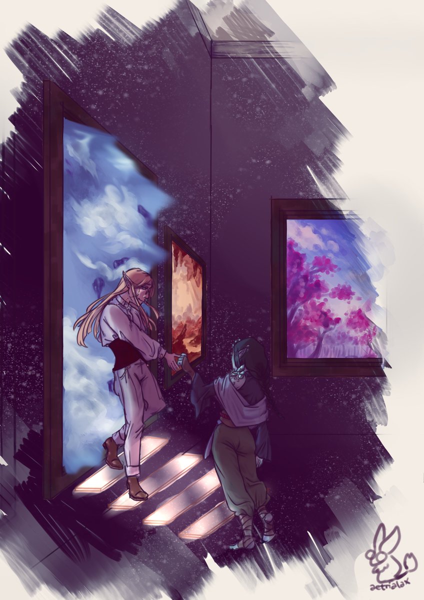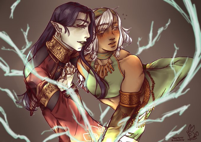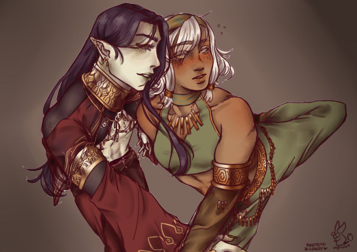 i did not sleep for these two... this was a dance practice in a former campaign ceres and szeteth originally came from, i always wanted to do the scene justice :> #dndart #dndcharacter #dnd5e