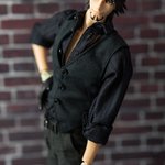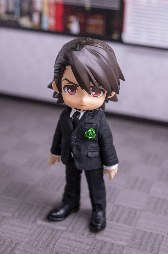 #ドールさんの正装見せて ちびアーツヘッドに、梅さん作のデカール、オビツ11ボディの虎徹さん。 正装といわれたらこれかな。 ろぎさん作のスーツと、ishikraftさんのストレートチップ。